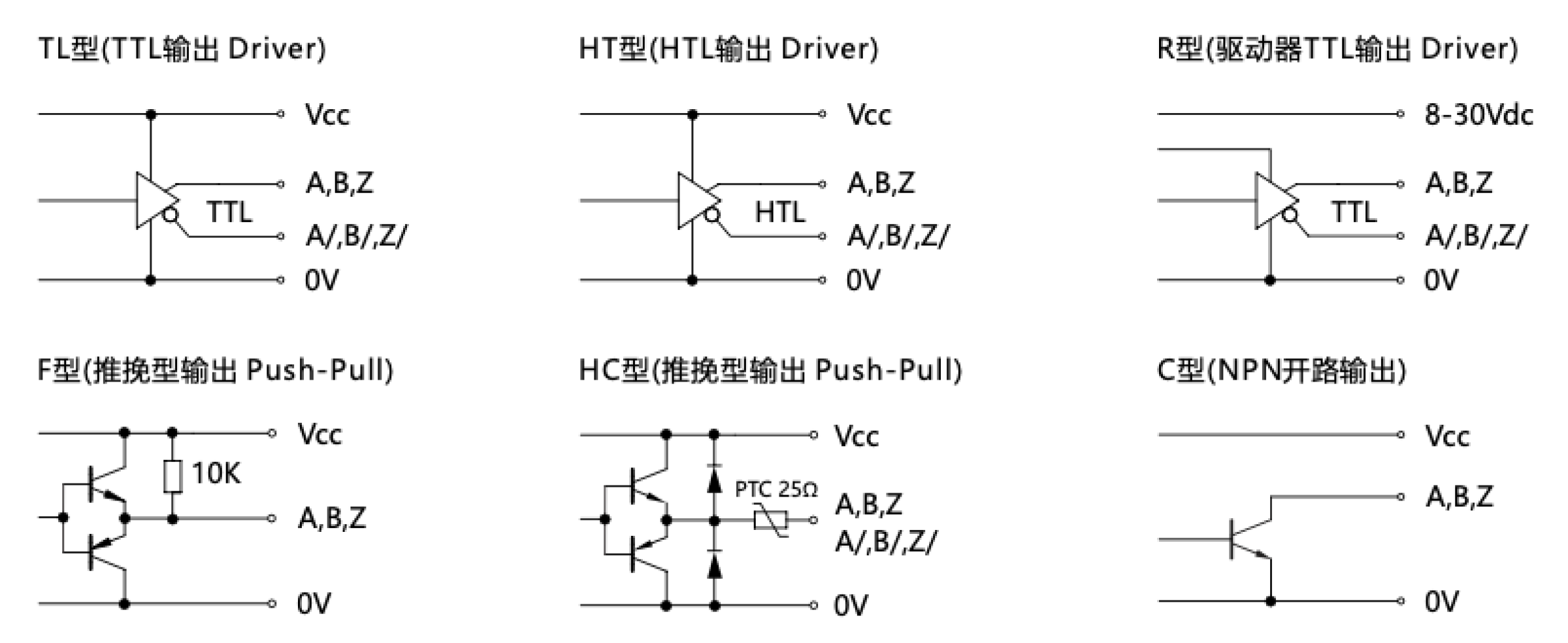 推挽输出 推挽差分输出HTL RS422/TTL |